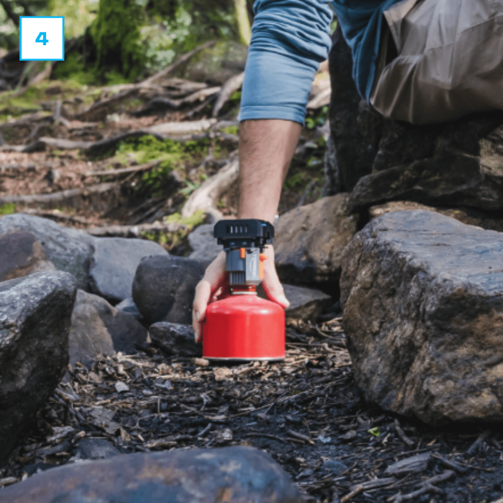 - Remove the protective cap from the gas cartridge and screw the cartridge clockwise into the base of the device until it clicks.