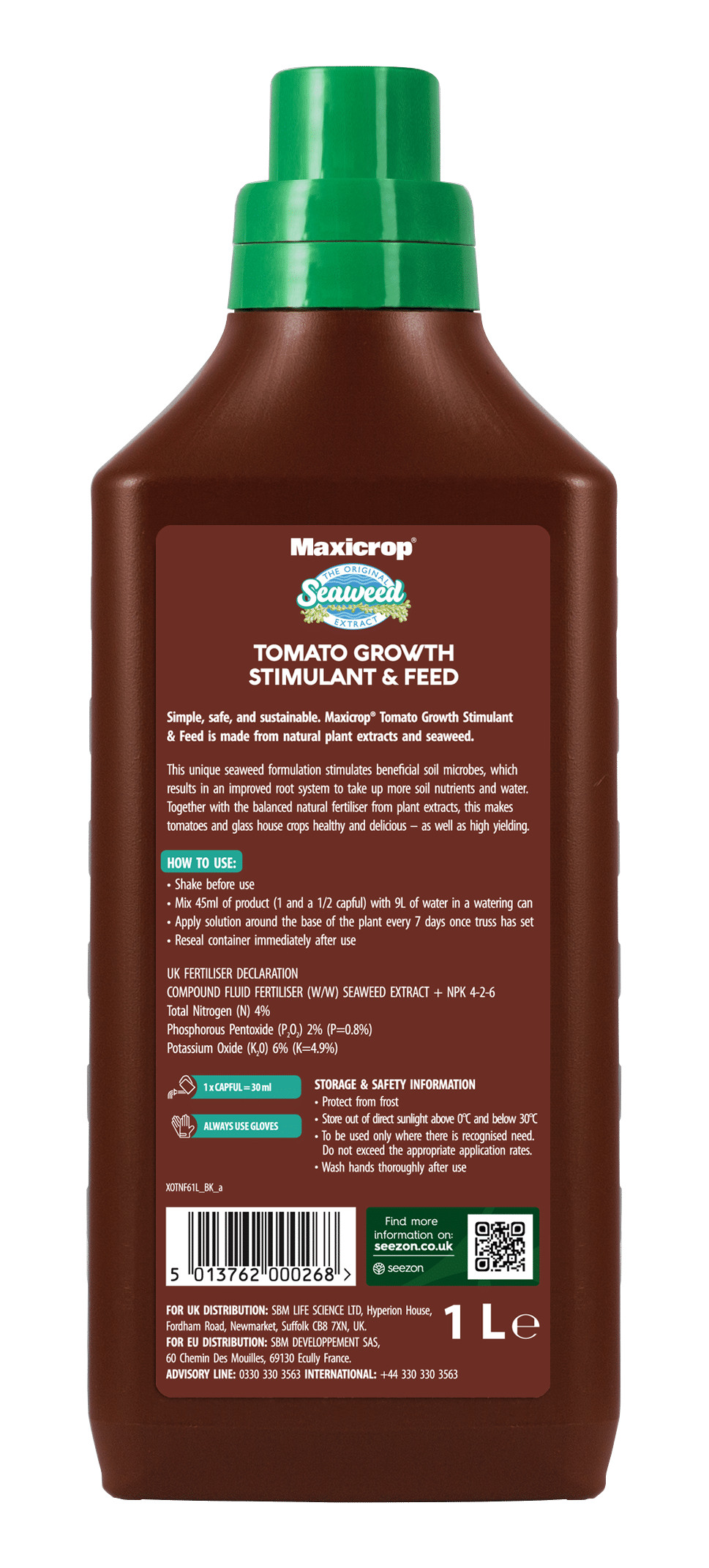 Whether you’re growing tomatoes in your garden, greenhouse, or containers, Maxicrop ensures your plants receive the best care for a plentiful harvest. With its natural ingredients and powerful seaweed extract, you’ll enjoy stronger, healthier plants and an abundance of tomatoes bursting with flavour.