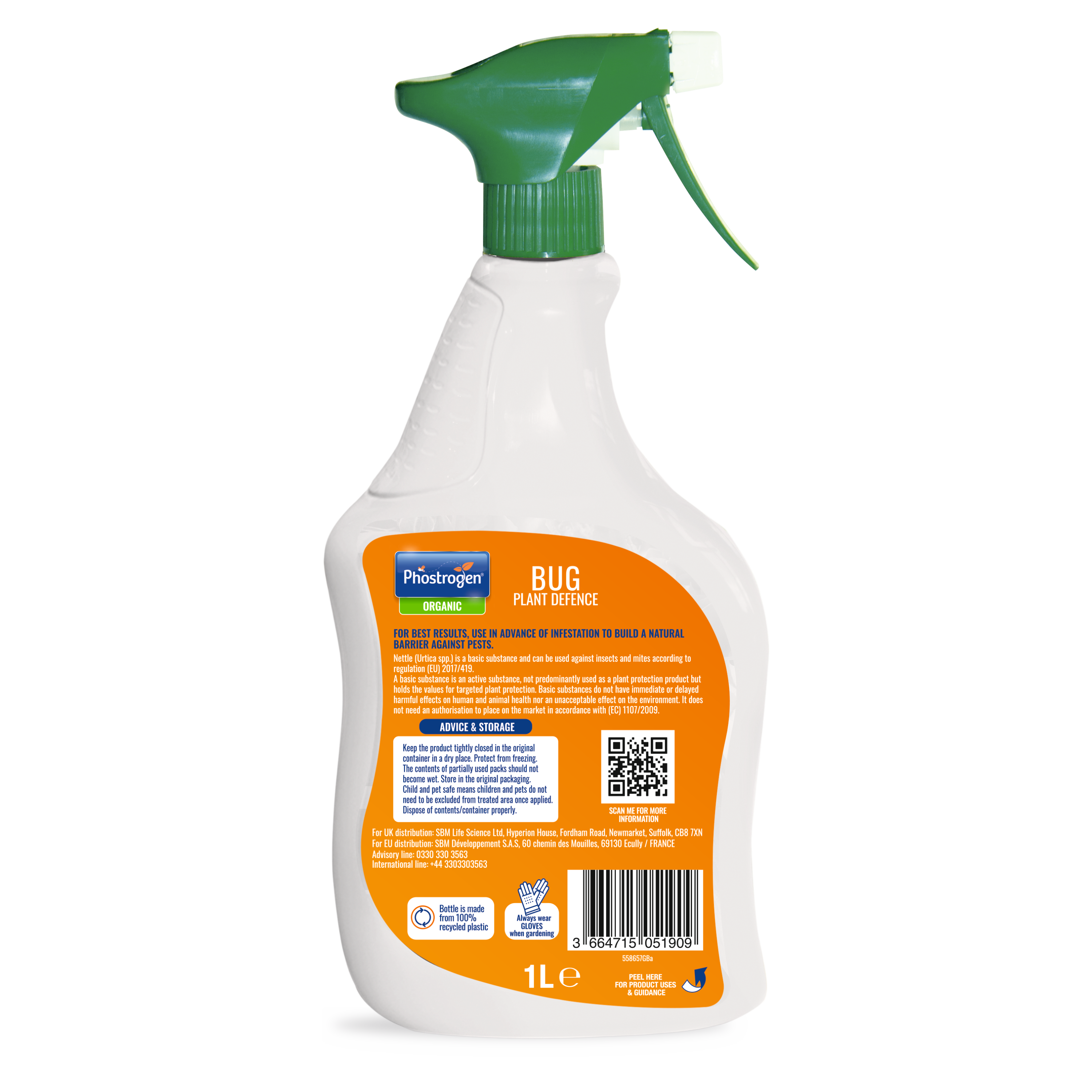 Phostrogen® Bug Plant Defence is a natural pretreatment that strengthens your plants. For use in advance of infestation, Bug Plant Defence creates a natural barrier to protect ornamental & edible crops in the home & garden. Not only does it protect before pests take over, but it can also be used as a curative treatment during the initial outbreak. Certified for organic gardening by Organic Farmers & Growers, Bug Plant Defence is child, pet & bee friendly.