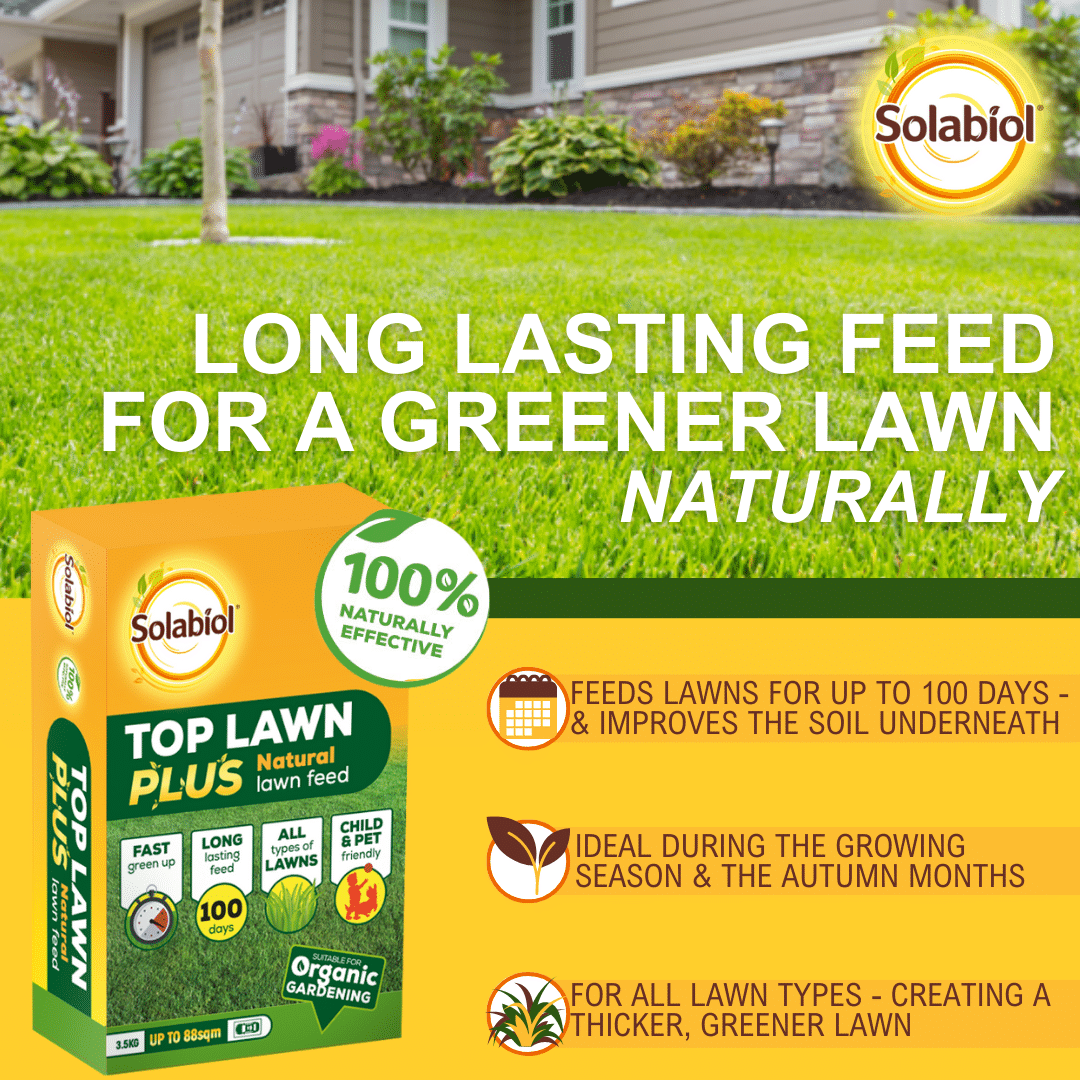 - Top Lawn Plus is a 100% naturally effective lawn fertiliser for use throughout the season for a lush green and dense lawn