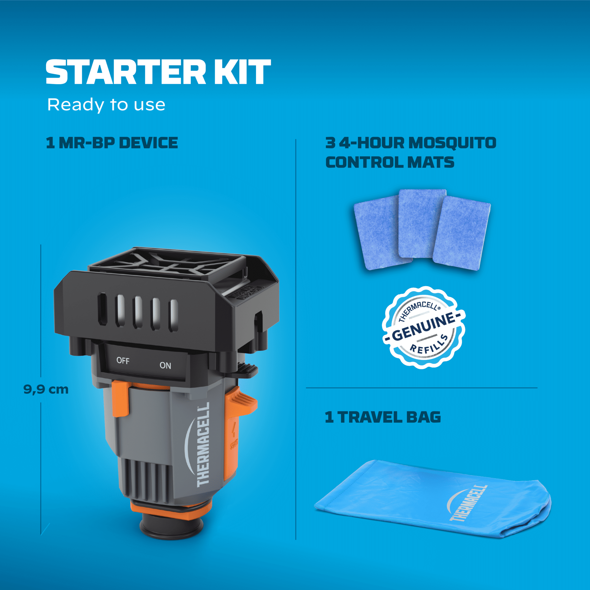 • Includes: 1 x protection device, 4 x 4-hour repellent mats, 1 x water-resistant travel bag. Requires camping gas canister (not included).