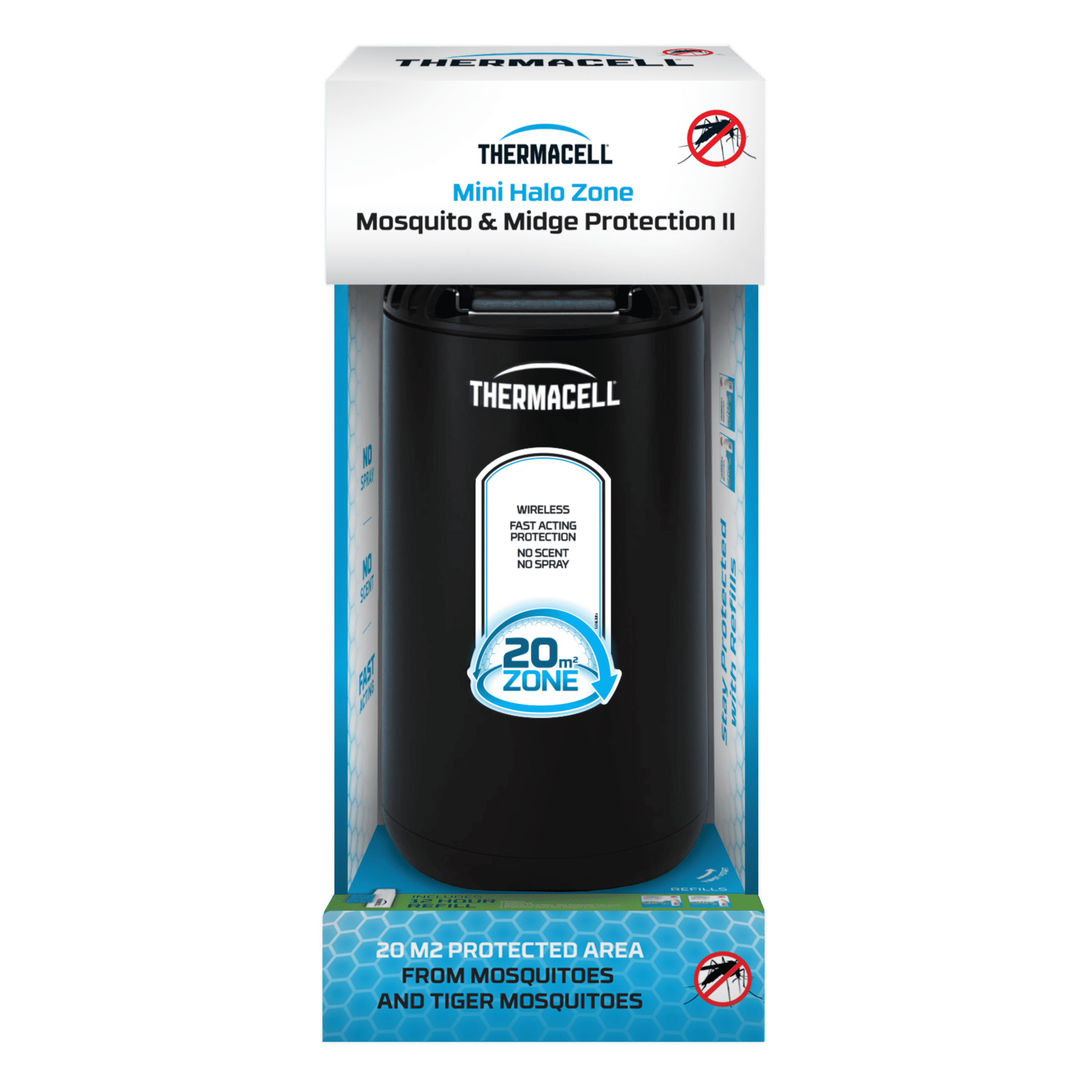 Mosquitoes and midges ruin everything, but Thermacell’s award-winning technology keeps them away by creating a 20sqm protection zone around you.